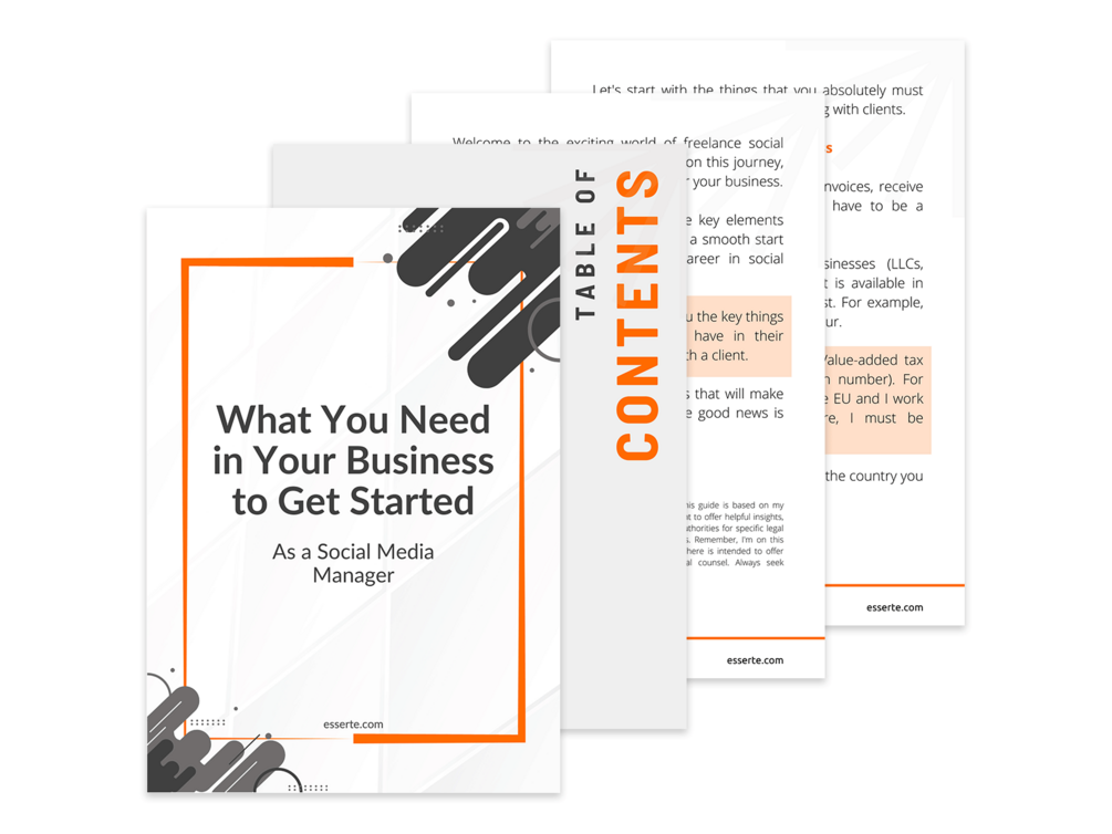 In this free guide, I talk about the essentials you need before getting your first client. Some things that might make your life easier as a business owner and social media manager.